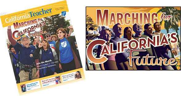 Logo for statewide march sponsored by California Federation of Teachers focusing on issues facing public education .